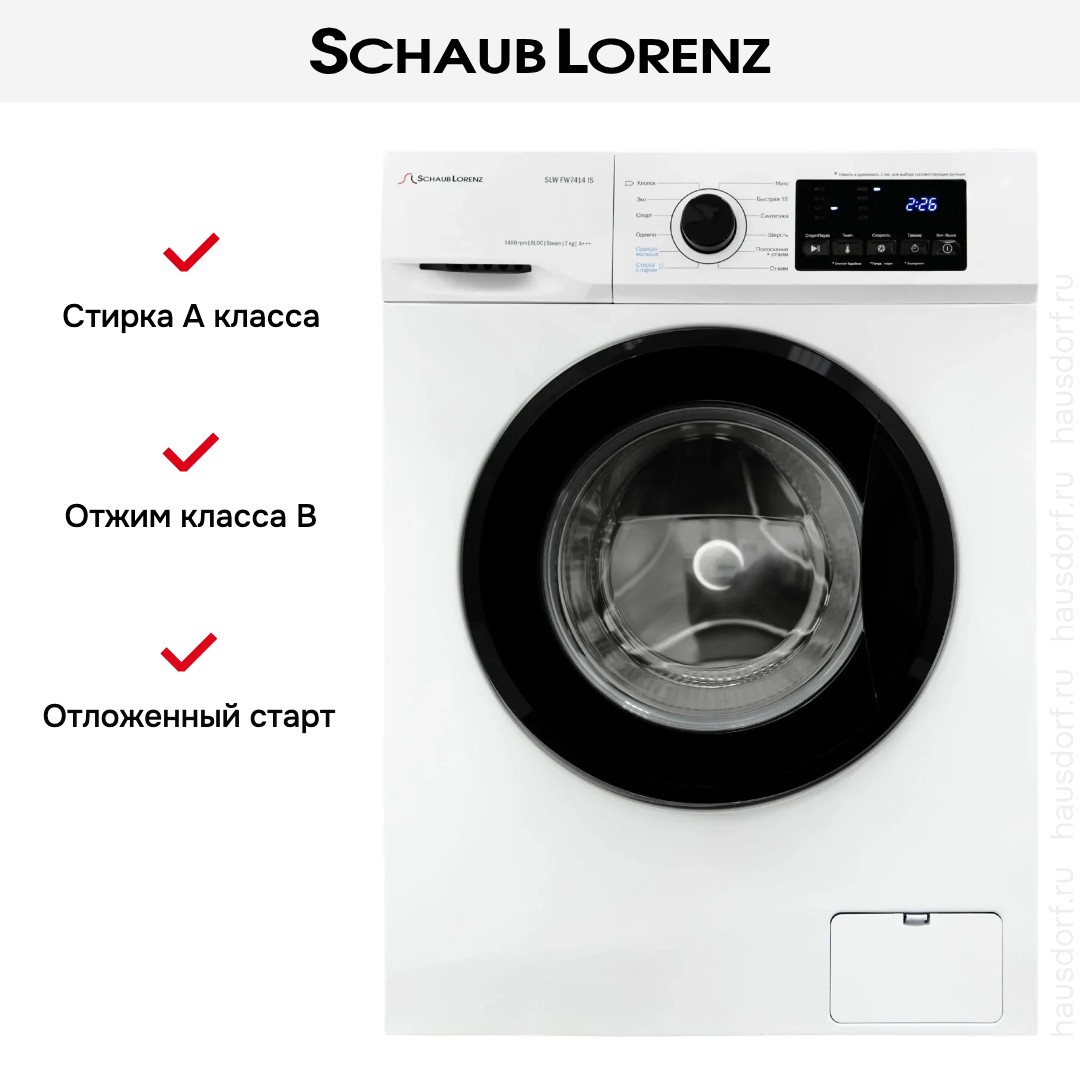 Стиральная машина Шауб Лоренц SLW FW7414 IS выпущена в стандартной конфигурации — устанавливается отдельно, поэтому рекомендуем заранее выделить для нее место в квартире. Благодаря классической фронтальной загрузке она привычна и удобна даже для тех, кто не очень разбирается в технике. За счет небольшой глубины данную модель предпочитают владельцы небольших квартир, студий. Вместительность барабана средняя, поэтому ее хватит и для одиночек, и для семей с детьми. Максимальная загрузка: 7 кг.