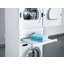 Второй способ — установка отдельно стоящей стиральной машины под раковиной в ванной — несколько труднее, ассортимент таких моделей также намного меньше. Установка раковины производится обычно на высоте 90 см, так что при этом необходим выбор раковины высотой не более 10 см (так называемая «Кувшинка» с горизонтальным сливом) и компактной стиралки уменьшенной высоты для предотвращения их соприкосновения, особенно во время отжима. Стиральная машина, кроме того, не должна выступать за край раковины, чтобы не допустить попадания влаги. Для удобства пользователей стиральная машина и раковина могут продаваться в комплекте.