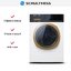 Внутри установлен нержавеющий барабан с LED-подсветкой, диаметр загрузочного люка 34 см и полезный объем для загрузки до 8 кг белья. Сенсорные кнопки и электронное управление с информативным дисплеем позволяют выбирать температуру, скорость отжима и откладывать старт от 15 минут до 24 часов. На экране отображаются ход программы, рекомендуемая загрузка для выбранной программы, текущая температура, обороты отжима и время до окончания цикла, что упрощает контроль процесса.