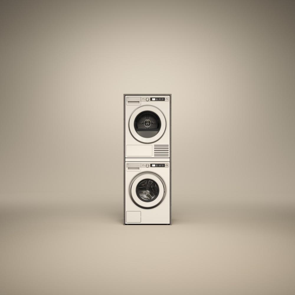 При приобретении сушильной машины следует обращать внимание на особенности установки. Наиболее популярны модели, которые устанавливаются в колонну со стиральными машинами — такие образом экономится место в кухне или в ванной. Сушилка, как более легкая, всегда размещается сверху. Кроме того, она должна иметь несколько меньшие габариты, чем стиральная — это гарантирует устойчивость всей конструкции, особенно во время отжима. Крепеж для установки обычно входит в комплект поставки. Такие модели могут устанавливаться и бок-о-бок со стиральными (тип Side-by-Side). Машины также соединяются вместе при помощи специального крепежа. Они могут дополняться полками или выдвижными ящиками для белья. Недостатком такой установки может считаться ограниченный выбор места, поскольку рядом должны находиться все коммуникации, включая канализацию, водопровод и электросеть.