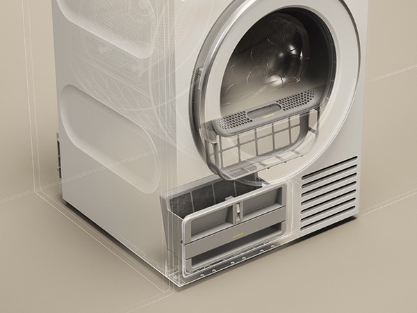 Сушильные машины конденсационного типа, как и устройства с тепловым насосом, не требуют присоединения к системе вентиляции и подключаются только к электросети. Конденсат, который удаляется из загруженного белья, стекает в специальный контейнер. Он расположен так, чтобы его извлечение было максимально удобным — например, в верхней части корпуса, там, где у стиральных машин находится лоток для порошка. Опустошать этот контейнер необходимо вручную — как правило, после завершения каждого цикла работы. О необходимости слива конденсата предупреждает специальный индикатор на панели управления.
