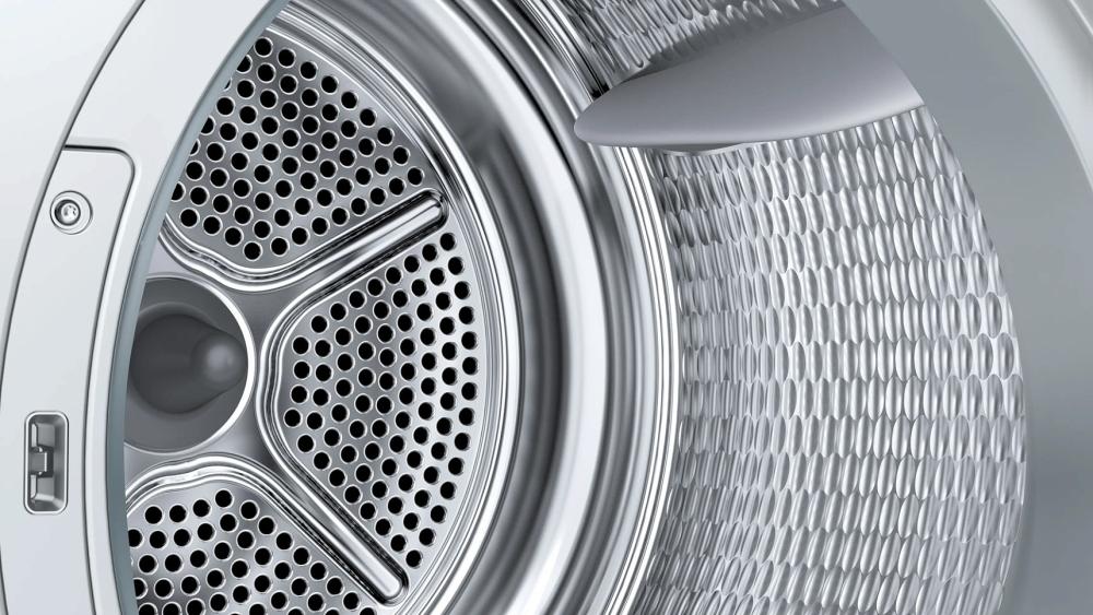 AntiVibration Design в сушильных машинах Bosch — особая конструкция боковых стенок, которая разработана для уменьшения уровня шума и максимальной защиты от вибрации. Благодаря форме стенок жесткость корпуса увеличивается, и машина вибрирует намного меньше даже при сушке на высокой скорости.
