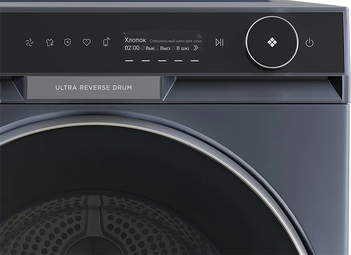 Элементы на панели управления сушильной машины служат для выбора программы сушки, для регулировки параметров работы, для задания дополнительных опций. Большинство сушильных маши оборудовано поворотными переключателями: с их помощью можно легко выбирать программу сушки — по остаточной влажности, по типу ткани, по виду изделий, по времени. Кнопки предназначаются для добавления к программе дополнительных опций: они могут быть как обычными, так сенсорными — в последнем случае все варианты выбора отображаются на дисплее, и возможности управления становятся более удобными и гибкими.