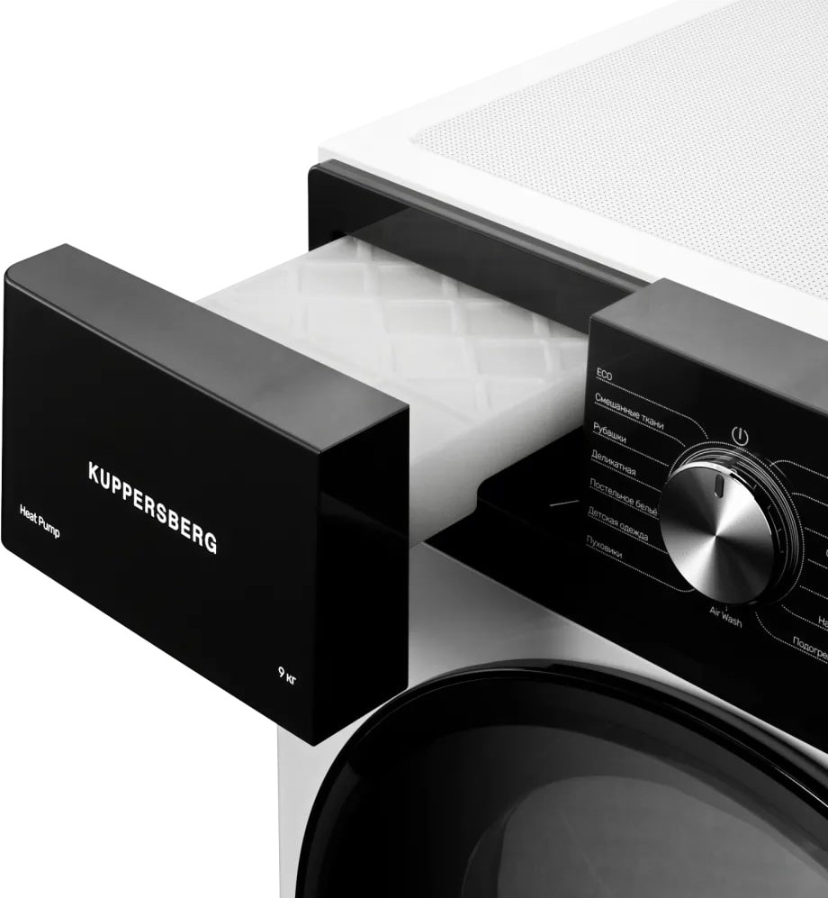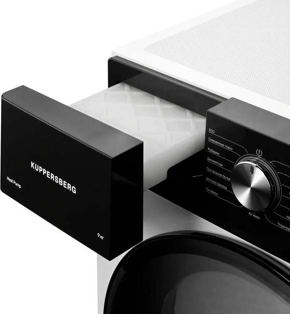 Сушильная машина Kuppersberg предназначена для домашнего использования, поэтому имеет стандартные габариты и большое разнообразие программ. Так как она устанавливается отдельно, нужно заранее найти достаточно места в помещении.