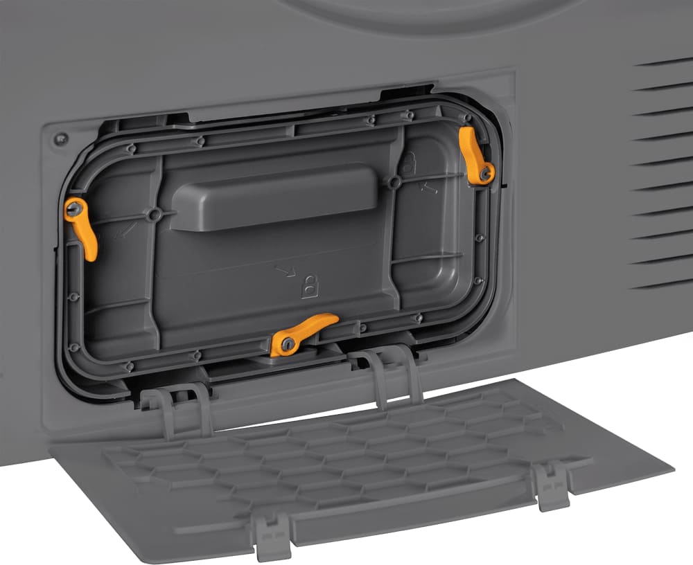Сушильные машины конденсационного типа, как и устройства с тепловым насосом, не требуют присоединения к системе вентиляции и подключаются только к электросети. Конденсат, который удаляется из загруженного белья, стекает в специальный контейнер. Он расположен так, чтобы его извлечение было максимально удобным — например, в верхней части корпуса, там, где у стиральных машин находится лоток для порошка. Опустошать этот контейнер необходимо вручную — как правило, после завершения каждого цикла работы. О необходимости слива конденсата предупреждает специальный индикатор на панели управления.