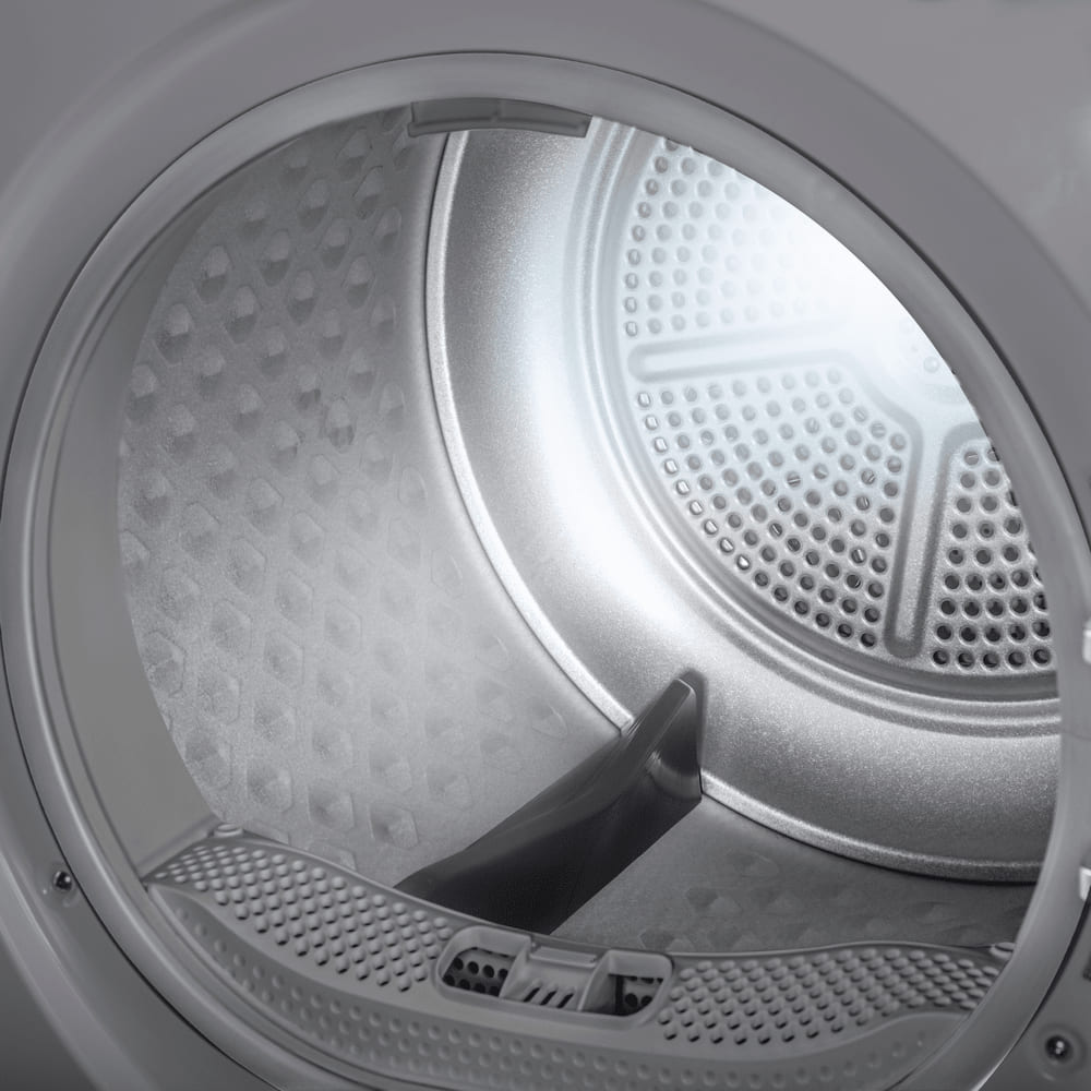 Тип сушки белья в данной модели — тепловой насос. Благодаря этому воздух поступает в барабан уже теплым, что ускоряет работу.