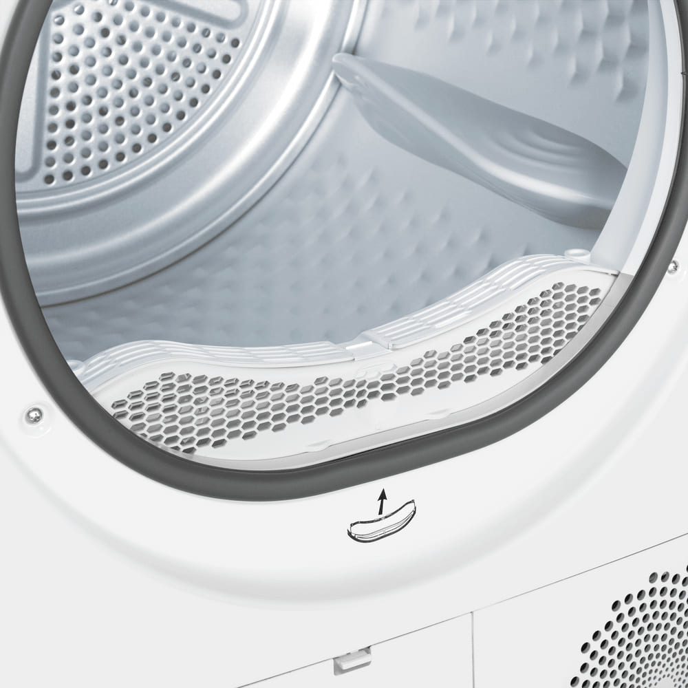 Сушильные машины конденсационного типа, как и устройства с тепловым насосом, не требуют присоединения к системе вентиляции и подключаются только к электросети. Конденсат, который удаляется из загруженного белья, стекает в специальный контейнер. Он расположен так, чтобы его извлечение было максимально удобным — например, в верхней части корпуса, там, где у стиральных машин находится лоток для порошка. Опустошать этот контейнер необходимо вручную — как правило, после завершения каждого цикла работы. О необходимости слива конденсата предупреждает специальный индикатор на панели управления.