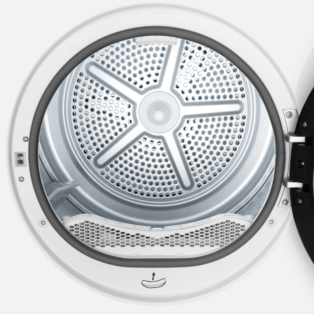 Стенки барабана покрыты «сотами» — небольшими выемками, благодаря которым образуется воздушная прослойка. Она амортизирует белье, увеличивает скорость сушки, предохраняет от складок.