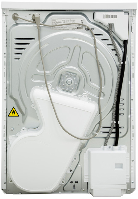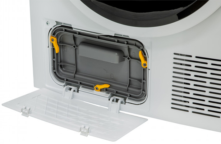 Сушильные машины конденсационного типа, как и устройства с тепловым насосом, не требуют присоединения к системе вентиляции и подключаются только к электросети. Конденсат, который удаляется из загруженного белья, стекает в специальный контейнер. Он расположен так, чтобы его извлечение было максимально удобным — например, в верхней части корпуса, там, где у стиральных машин находится лоток для порошка. Опустошать этот контейнер необходимо вручную — как правило, после завершения каждого цикла работы. О необходимости слива конденсата предупреждает специальный индикатор на панели управления.