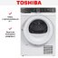 Toshiba TD-BK100GHRU(WS) — сушильная машина для дома с конденсационной системой и свободной установкой, рассчитанная на загрузку до 9 кг. Корпус белого цвета со стеклянной круглой дверцей с правым навесом сочетается с темной наклонной панелью управления и металлическими деталями, создавая аккуратный, сдержанный внешний облик. Классическая цветовая гамма гармонично вписывается в современный интерьер, не перегружая обстановку.