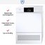 Высота сушильной машины составляет 82-85 см, благодаря чему ее можно разместить под столешницей — например, в ванной рядом с раковиной. У некоторых моделей высоту прибора можно уменьшить, сняв верхнюю крышку и заменив специальной технологической крышкой для встраивания или металлической плитой.