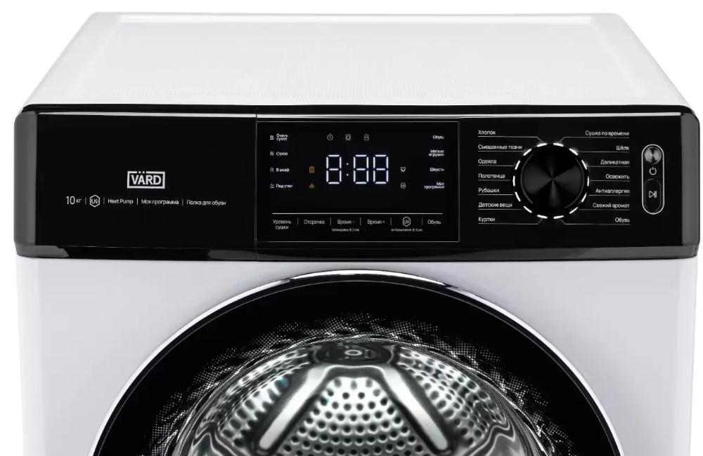 Сушильная машина VARD предназначена для домашнего использования, поэтому имеет стандартные габариты и большое разнообразие программ. Так как она устанавливается отдельно, нужно заранее найти достаточно места в помещении. Особенности, на которые нужно обратить внимание при размещении: возможность установки в колонну. Колонна — это название для совместной установки со стиральной машиной друг на друга, обычно для этого нужен специальный крепежный элемент.