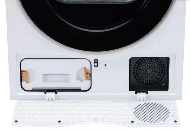 Высота сушильной машины составляет 82-85 см, благодаря чему ее можно разместить под столешницей — например, в ванной рядом с раковиной. У некоторых моделей высоту прибора можно уменьшить, сняв верхнюю крышку и заменив специальной технологической крышкой для встраивания или металлической плитой.