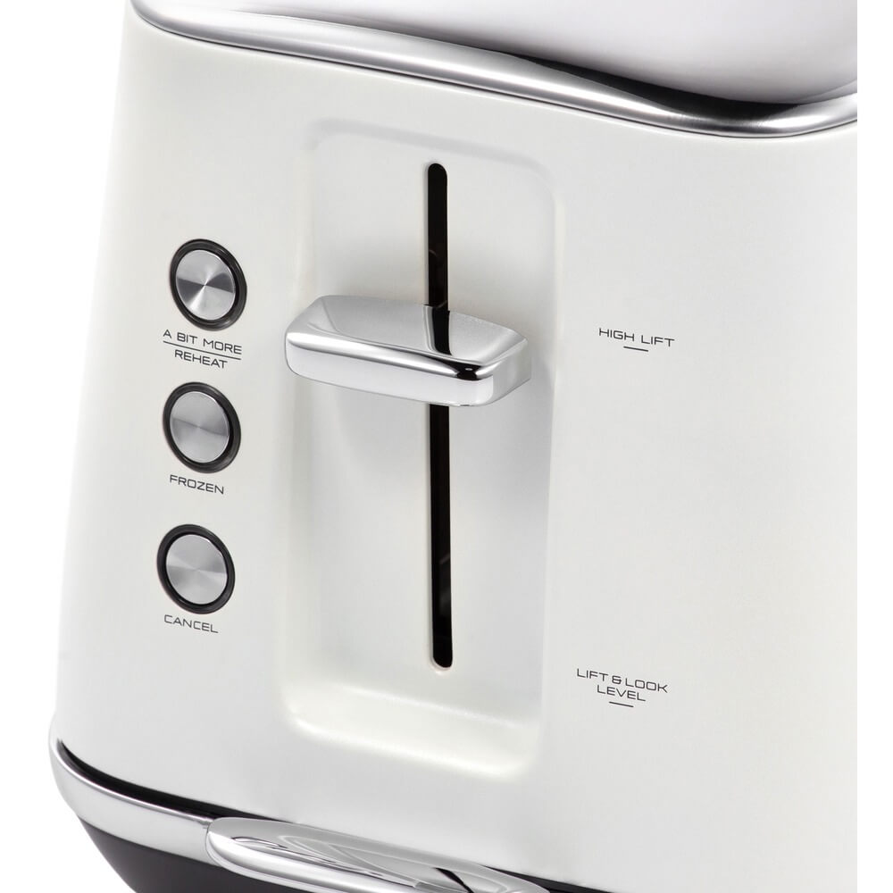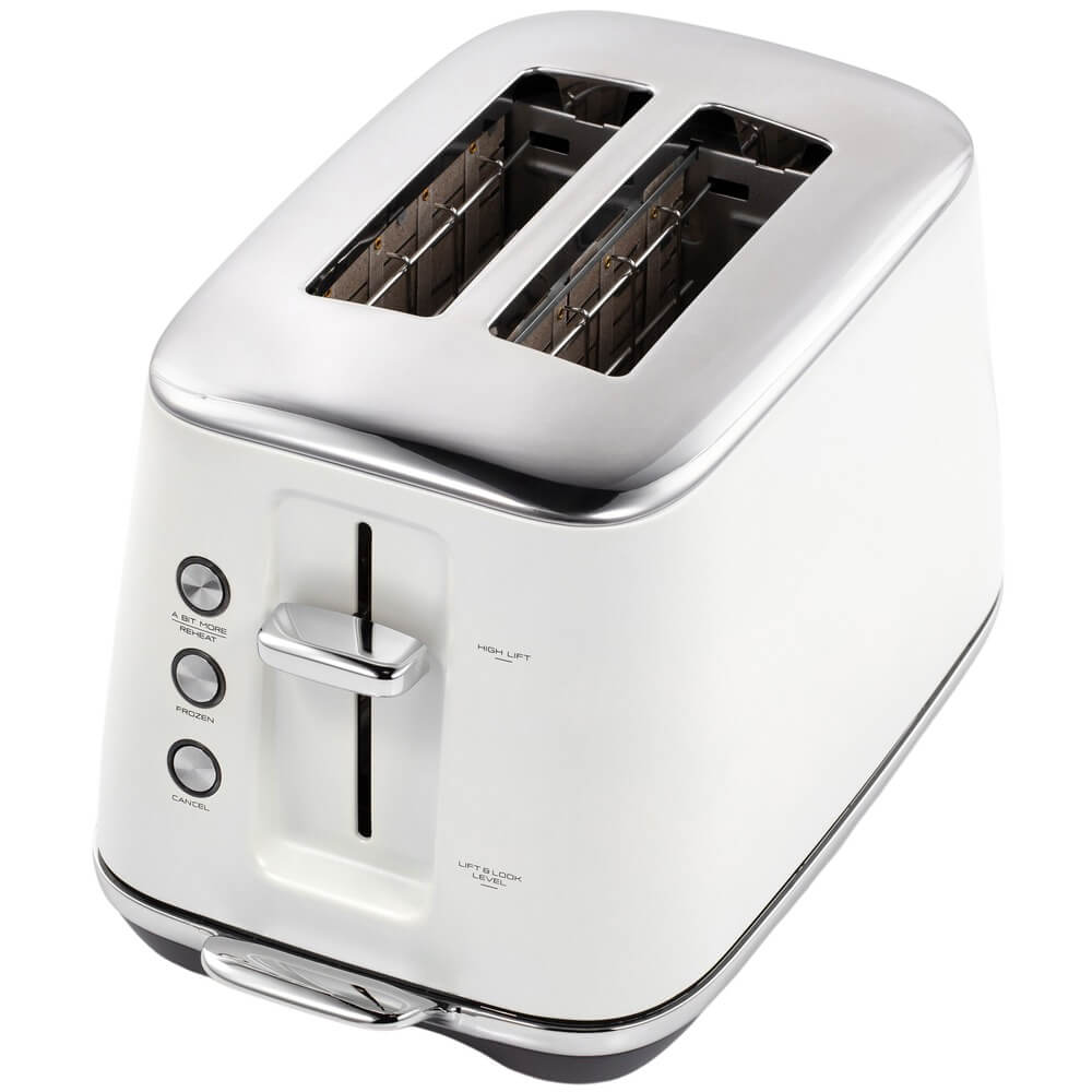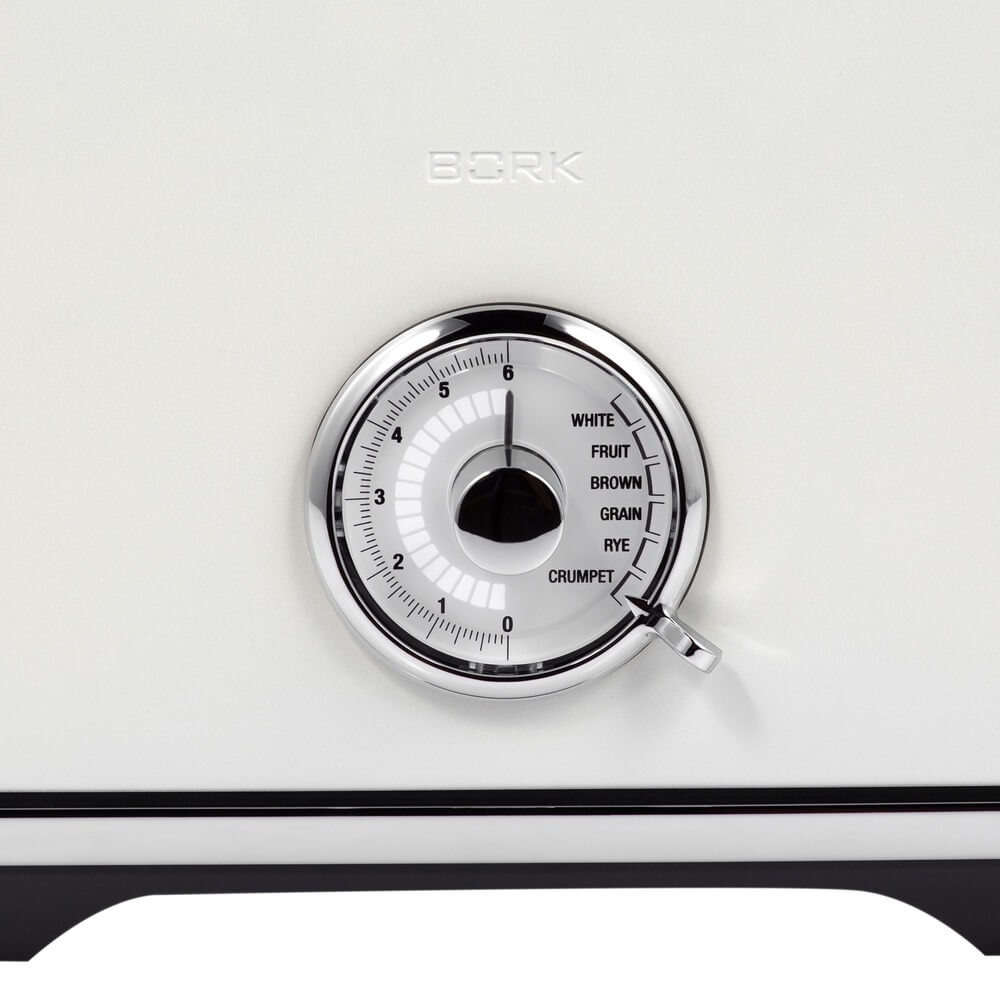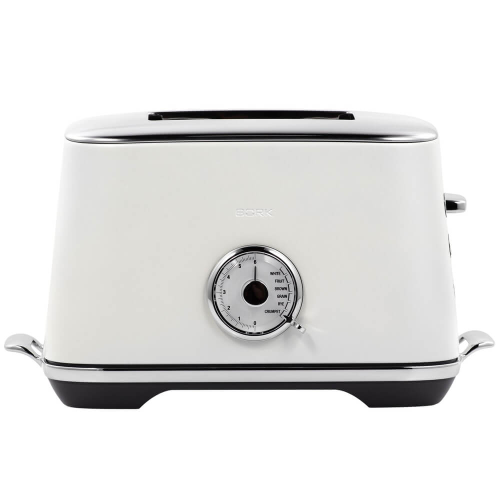 Стильный тостер BORK имеет компактный корпус на устойчивых ножках, благодаря которым не пошатывается, даже если хлеб выпрыгивает вверх в конце приготовления. Основной материал, из которого изготовлен прибор, — нержавеющая сталь. Его главный оттенок — белый. Простое и понятное механическое управление позволяет быстро разобраться во всех функциях. Простое и понятное электронное управление позволяет быстро разобраться во всех функциях. На корпусе расположены кнопочные переключатели для изменения настроек.