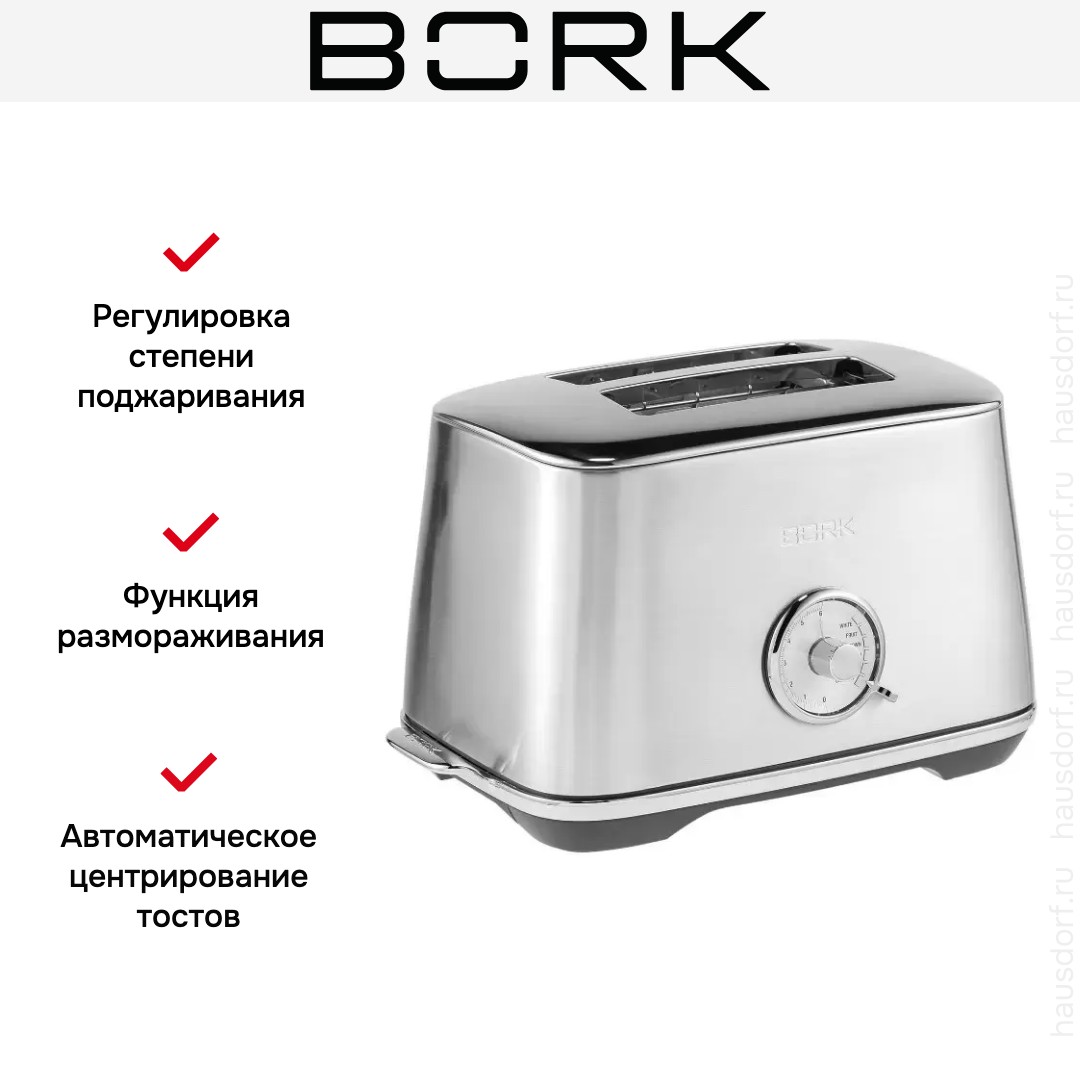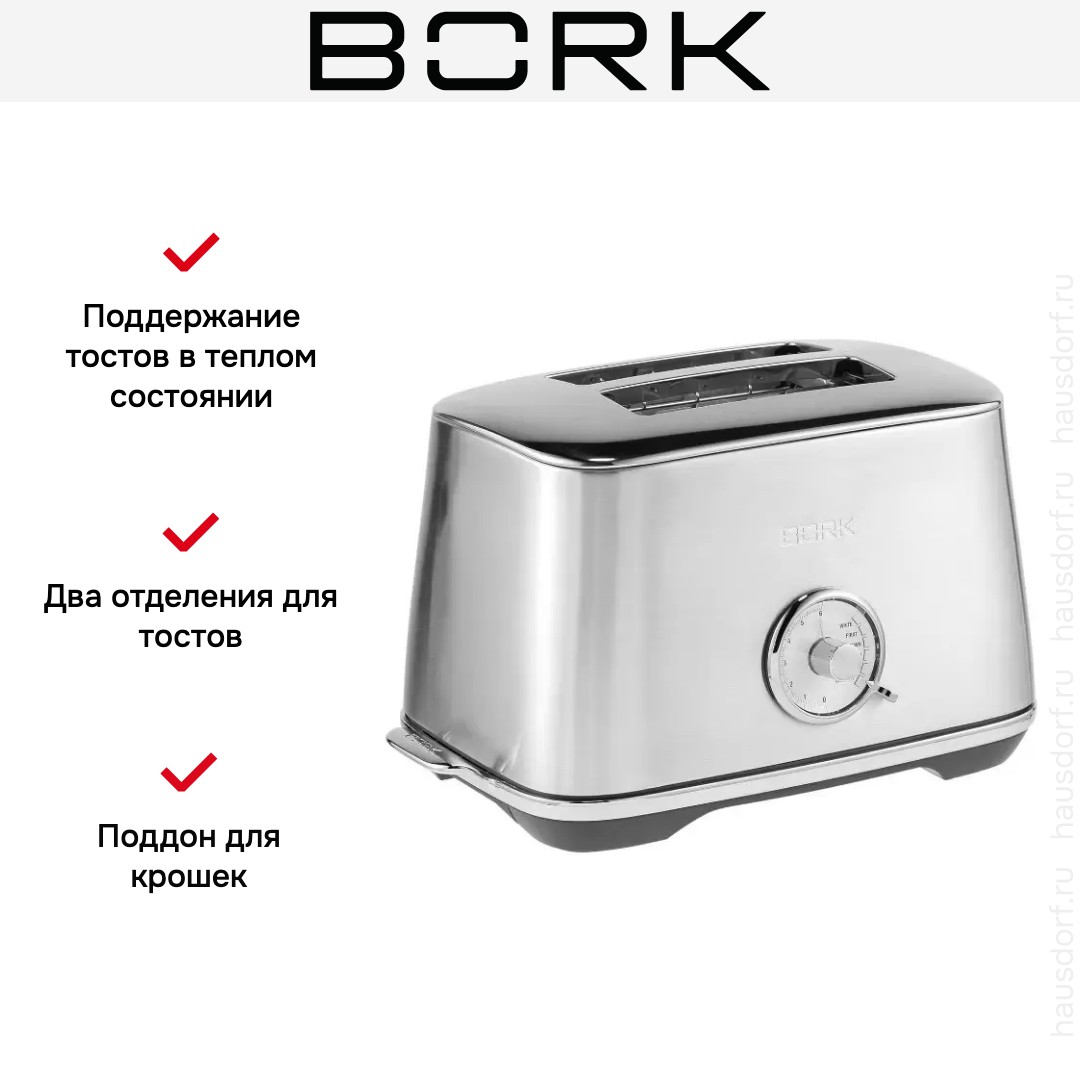 Тостер BORK T703 выполнен в ретро стиле с интересным оформлением дисплея в корпусе из нержавеющей стали, что увеличивает срок службы прибора. 6 ступеней поджаривания позволяют подобрать подходящую степень обжарки тостов на любой вкус.