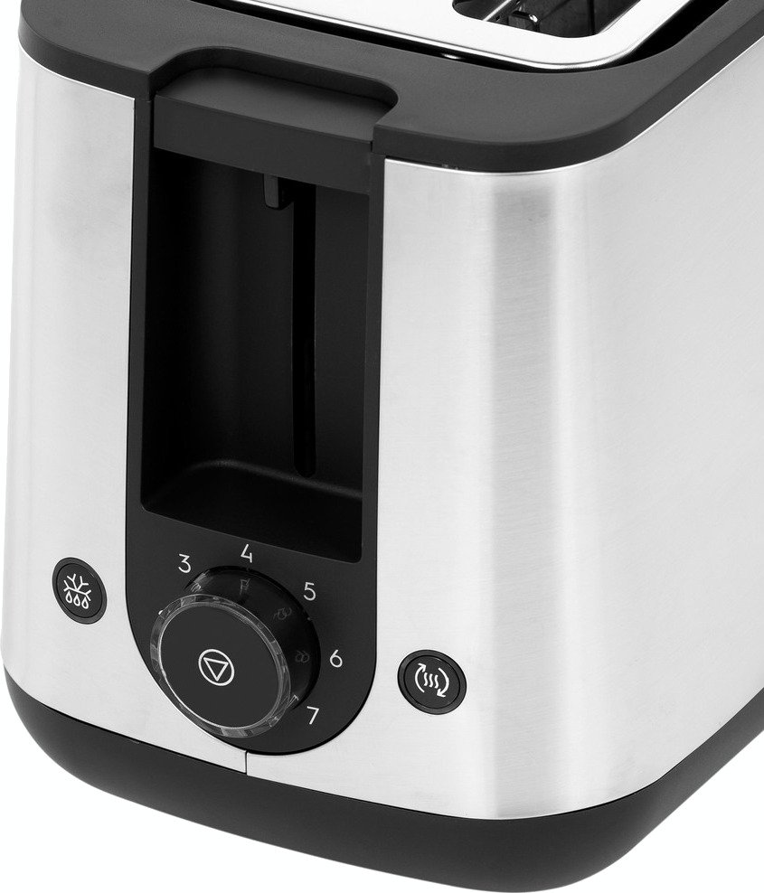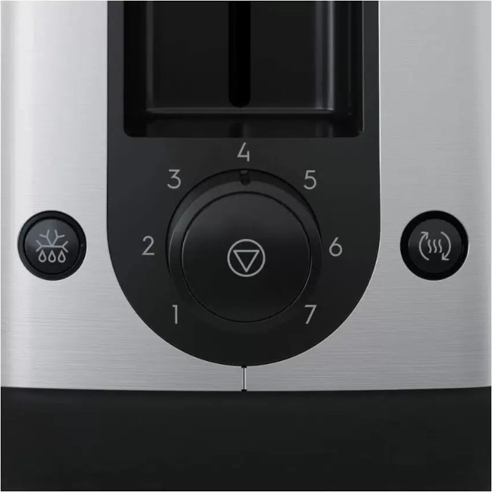 Стильный тостер Electrolux имеет компактный корпус на устойчивых ножках, благодаря которым не пошатывается, даже если хлеб выпрыгивает вверх в конце приготовления. Основной материал, из которого изготовлен прибор, — нержавеющая сталь. Его главный оттенок — серебристый/черный. Простое и понятное механическое управление позволяет быстро разобраться во всех функциях. Простое и понятное электронное управление позволяет быстро разобраться во всех функциях. На корпусе расположены кнопочные+поворотные переключатели для изменения настроек.