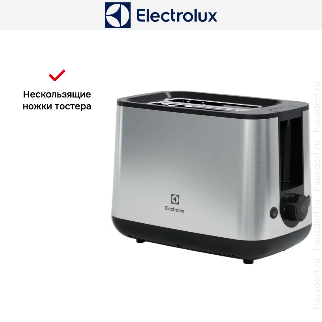 Тостер Electrolux E3T1-3ST — надежный помощник для приготовления ежедневных завтраков. Корпус из нержавеющей стали смотрится стильно и служит долго. Серебристо-черная отделка легко сочетается с другой техникой на кухне. Компактные габариты 26.5×16.5×19.5 см экономят место на столешнице. Вес 1.29 кг и нескользящие ножки отвечают за хорошую устойчивость. Механическое управление дает точную и понятную настройку без лишних действий.