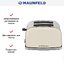 Стильный тостер Maunfeld имеет компактный корпус на устойчивых ножках, благодаря которым не пошатывается, даже если хлеб выпрыгивает вверх в конце приготовления. Основной материал, из которого изготовлен прибор, — нержавеющая сталь. Его главный оттенок — бежевый. Простое и понятное механическое управление позволяет быстро разобраться во всех функциях. Простое и понятное электронное управление позволяет быстро разобраться во всех функциях. На корпусе расположены кнопочные+поворотные переключатели для изменения настроек. Благодаря небольшому дисплею еще удобнее следить за процессом.