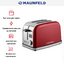 Стильный тостер Maunfeld имеет компактный корпус на устойчивых ножках, благодаря которым не пошатывается, даже если хлеб выпрыгивает вверх в конце приготовления. Основной материал, из которого изготовлен прибор, — нержавеющая сталь. Его главный оттенок — вишня. Простое и понятное механическое управление позволяет быстро разобраться во всех функциях. Простое и понятное электронное управление позволяет быстро разобраться во всех функциях. На корпусе расположены кнопочные+поворотные переключатели для изменения настроек. Благодаря небольшому дисплею еще удобнее следить за процессом.