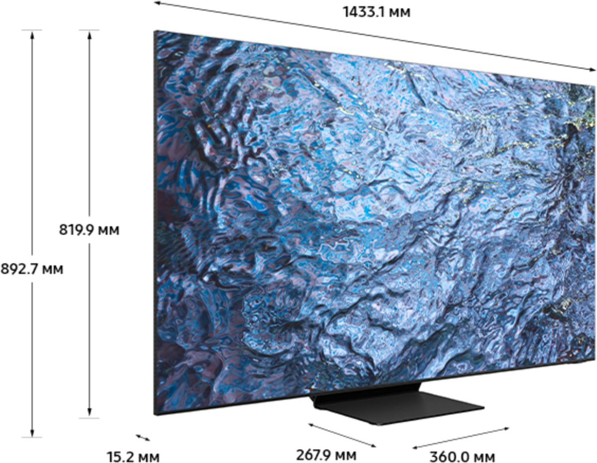 Тип экрана: QLED. Диагональ, ": 65. Цвет: черный. Разрешение, px: 7680х4320. Формат: 16:9.
