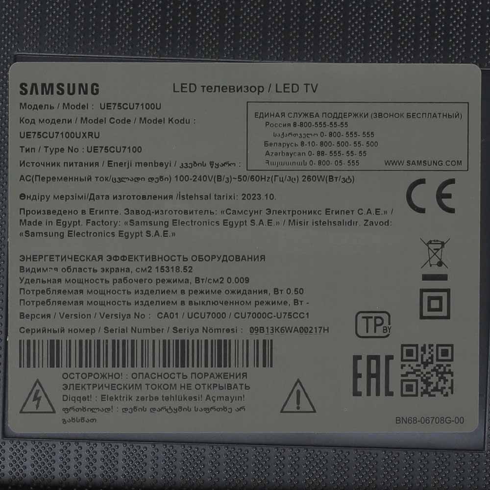 Телевизор Samsung UE75CU7100UXRU в Екатеринбурге
