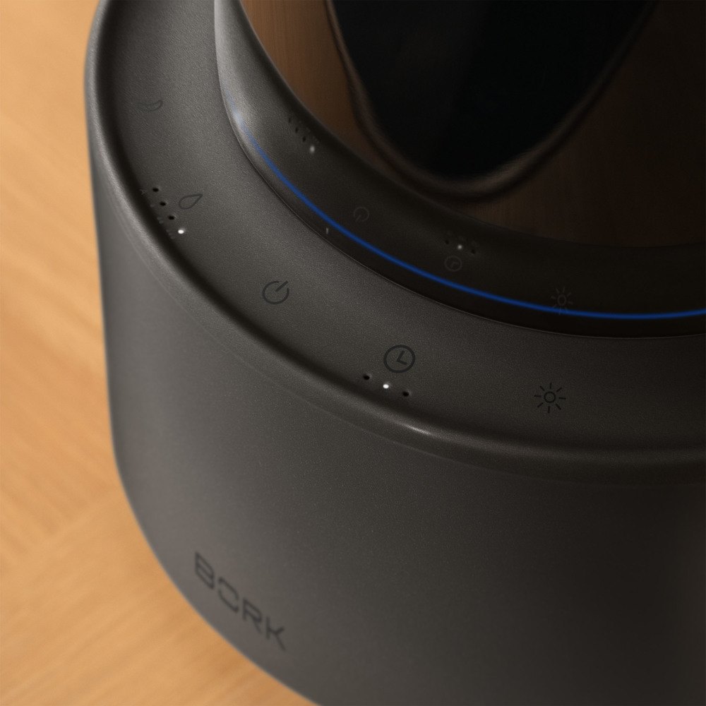 Электронное управление работой увлажнителя воздуха Bork позволяет регулировать параметры одним нажатием кнопки, а информативный дисплей демонстрирует текущие характеристики работы. Отсутствие выступающих регуляторов на корпусе создает лаконичный дизайн.