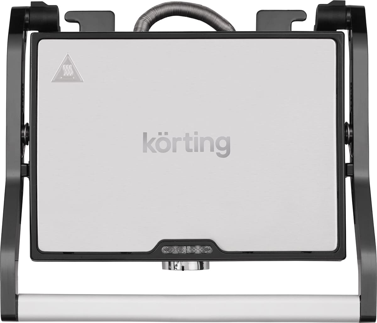 Прибор оснащён нагревательным элементом мощностью 1000 Вт, что гарантирует быстрый выход на рабочую температуру и эффективную теплопередачу. Корпус выполнен из прочного пластика, устойчивого к перепадам температур, а рабочая поверхность — из нержавеющей стали, которая отличается долговечностью, лёгкостью в очистке и безопасностью при контакте с пищей. Ручки также изготовлены из термостойкого пластика, что исключает нагревание во время эксплуатации и обеспечивает комфорт при открывании и закрывании крышки.