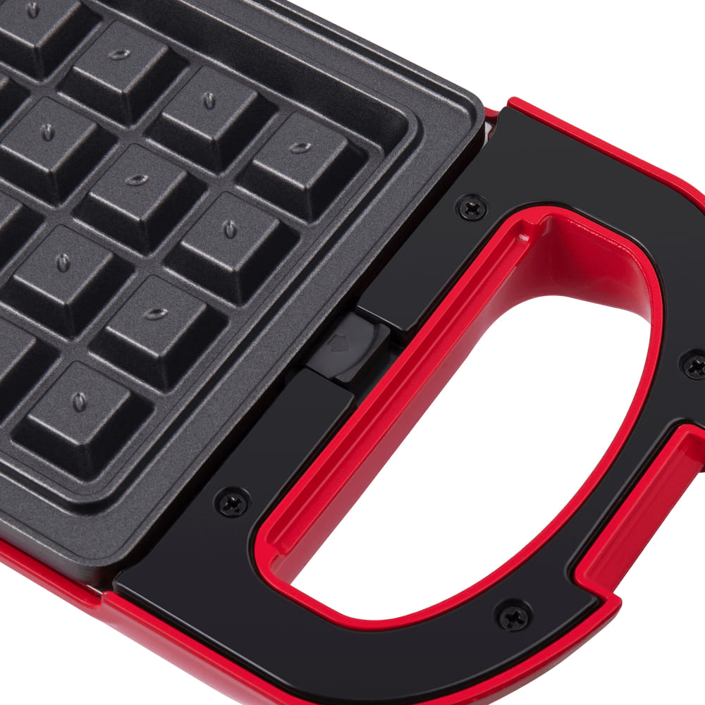 Рабочий блок закреплён неподвижно, что повышает прочность конструкции при использовании, но пластины при этом съёмные для удобства мытья и хранения. Ненагревающаяся пластиковая ручка обеспечивает безопасное открытие и закрытие во время выпекания. Для небольших кухонь предусмотрена опция вертикального хранения, а длина шнура 0.85 м и компактный профиль облегчают размещение в шкафу или на полке.
