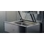 Фронт оттенка металлик органично вписывается в современный интерьер, он устанавливается вровень с мебельными фасадами. Выдвижной ящик не имеет ручек и открывается нажатием. Стандартные габариты — высота 13,7 см, ширина 59 см, глубина 51 см — позволяют монтировать прибор под столешницу либо в вертикальную колонну, например, над духовым шкафом.