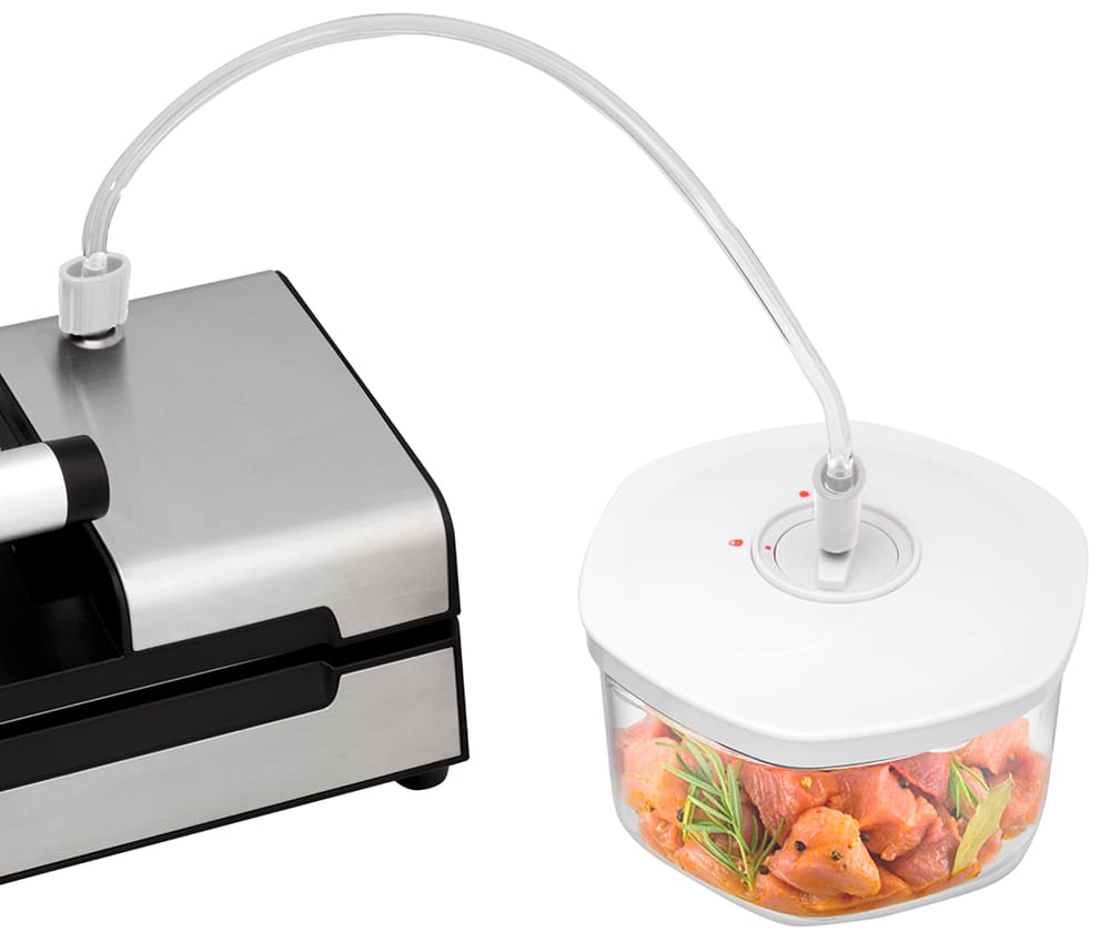 С помощью этого прибора можно в разы увеличить срок хранения продуктов, подготовить мясо и рыбу для обработки технологией Sous-Vide, тщательно замариновать в любом соусе. Обращайте внимание на вместительность камеры, чтобы не повредить технику.