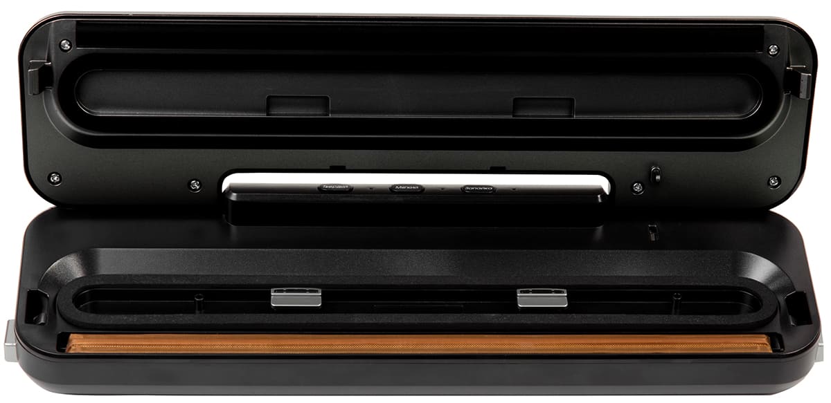Цвет данной модели — черный/серебристый — позволяет интегрировать ее практически в любой интерьер. Установите вакуумный упаковщик в одну нишу с духовкой или в колонну с другим прибором. Благодаря современному электронному управлению можно быстро выбрать необходимый режим и проверить, как продвигается цикл.