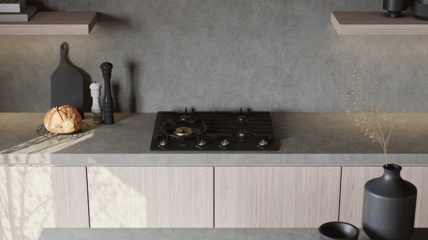 В среднем у газовых моделей этот показатель больше, чем у электрических. Высота газовых варочных поверхностей составляет обычно от 4 до 10 см: важное значение при выборе модели имеет и толщина столешницы. Известно, что стандартная толщина столешницы из ДВП составляет около 38 мм: исходя из этого, высота газовых варочных панелей чаще всего составляет 4–5 см. Если варочная панель имеет большую высоту, ее обычно заглубляют в столешницу, стараясь при этом не повреждать внутреннюю сторону. Для этого под ней устанавливают дополнительную полку (фальшпанель), за счет которой уменьшается пространство в тумбе.
