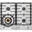 На фронтальной части находится механическая панель управления с 4 поворотным переключателями серебристого цвета. Продуманное расположение переключателей снижает риск ожогов, ручки не нагреваются при включении и могут сниматься для очистки. Супермощная конфорка Super Vario Wok с двумя контурами пламени позволяет очень быстро достичь нужной температуры. Ее мощность достигает 4600 Вт, а дополнительный ряд пламени способен нагреть непосредственно центральную часть посуды. Три гибридные горелки А+ высоко подняты над поверхностью, так что панель при приготовлении пищи меньше загрязняется. Воздух в них поступает с двух сторон, что способствует более равномерному нагреванию дна посуды, а разборная конструкция и материал основы Keradur® позволяют легко ухаживать за самой горелкой. Функция «газ-контроль» прекращает подачу газа, если по какой-либо случайности пламя погаснет. Массивные раздельные чугунные решетки необычной формы позволяют устанавливать посуду в любой точке поверхности. Они легко снимаются для мытья под струей воды. В комплект входят круглая подставка для приготовления в сковороде WOK и форсунки для присоединения к баллонному газу.