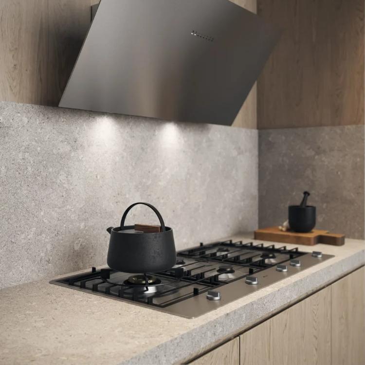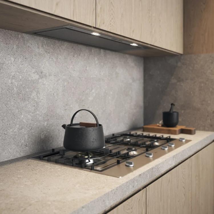 Также опасно устанавливать варочную панель вплотную к холодильнику или шкафу: следует оставить между ними расстояние не менее 30 см. Зазор между задней стороной варочной панели и стенкой кухни составляет обычно не менее 50 см для электрических панелей и 70 см — для газовых. Иногда стену кухни защищают огнеупорной панелью.