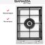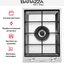 Цвет — нержавеющая сталь. Благодаря рамке она отделена от рабочей зоны и прочнее закреплена на столешнице. Открытый огонь не страшен ни вашей посуде, ни вам, так как горелки надежно закрыты решетками. Материал самой поверхности: нержавеющая сталь. Управление этой моделью механическое. Для переключения уровней нагрева, выбора функций используются следующие переключатели: поворотные. Простая система контроля за прибором делают его более универсальным, ведь разобраться сможет кто угодно.