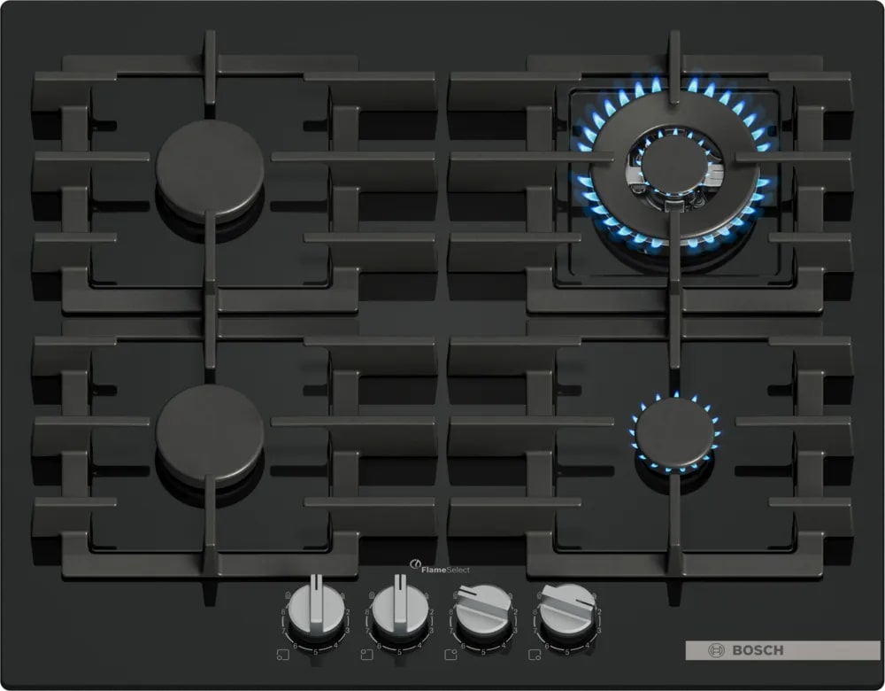 Технология FlameSelect в современных газовых варочных панелях Bosch обеспечивает ступенчатую регулировку пламени на 9 предустановленных уровнях. Конфорки с FlameSelect позволяют точно задавать интенсивность нагрева поворотом специального переключателя, не требуя визуального контроля.