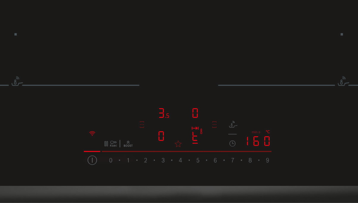 Техника работает от электрической сети и использует индукционный принцип нагрева, который отличается высокой скоростью, энергоэффективностью и безопасностью: тепло генерируется непосредственно в посуде, а стеклокерамическая поверхность вне зоны контакта остаётся относительно прохладной. Управление реализовано с помощью интуитивно понятной системы DirectSelection — вместо привычных сенсорных полос здесь предусмотрены отдельные кнопки для каждой зоны нагрева, что позволяет мгновенно активировать нужную конфорку и точно задать уровень мощности без прокрутки меню.