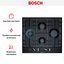 Газовая варочная панель Bosch PCI6A6B90R — независимая панель с ромбовидным расположением конфорок. Она относится к дизайн-линии Serie | 6 и отличается поверхностью из черной эмалированной стали с черной рамкой. На темном фоне выделяется стильная фурнитура серебристого цвета: поворотные механические выключатели расположены на фронтальной части изделия.