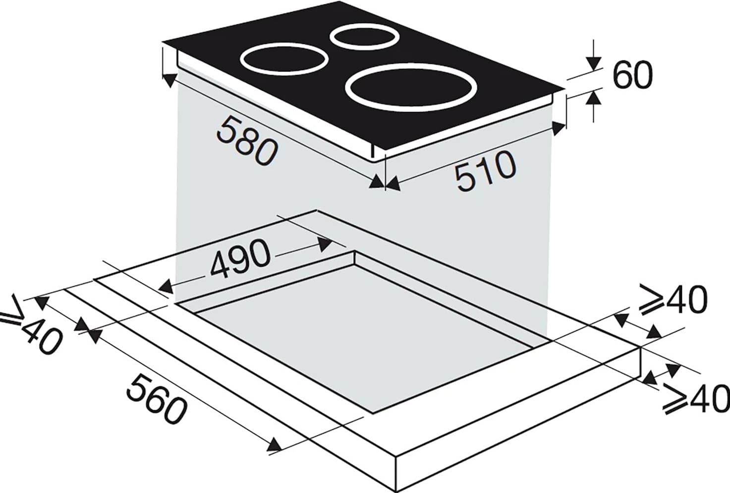 Электрические и индукционные варочные панели из стали, эмали и стеклокерамики имеют толщину от 4 до 5,5 cм, но выглядят более низкими, так как на них отсутствуют выступающие горелки. Как правило, подробные требования к толщине столешницы для установки приводятся в руководстве пользователя.