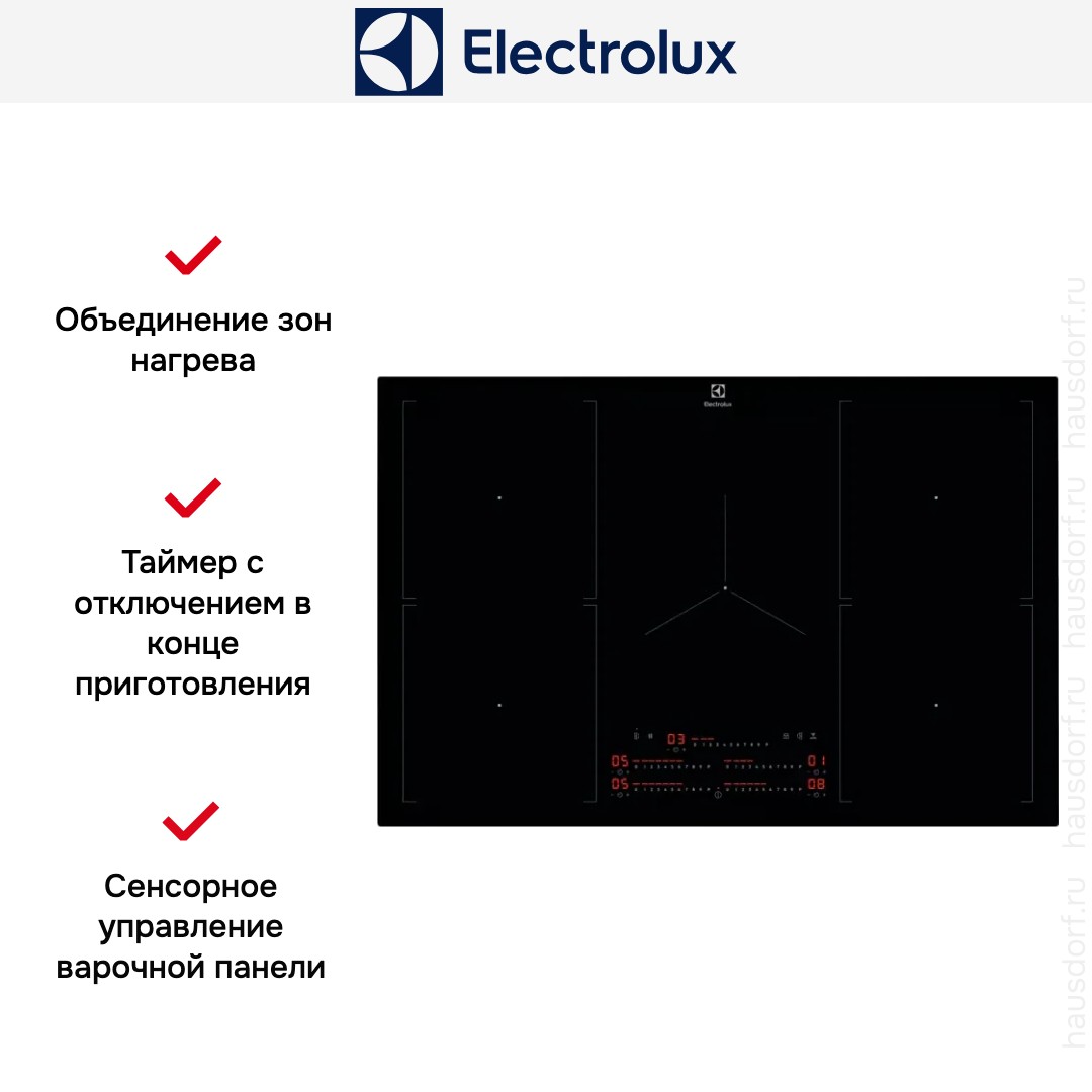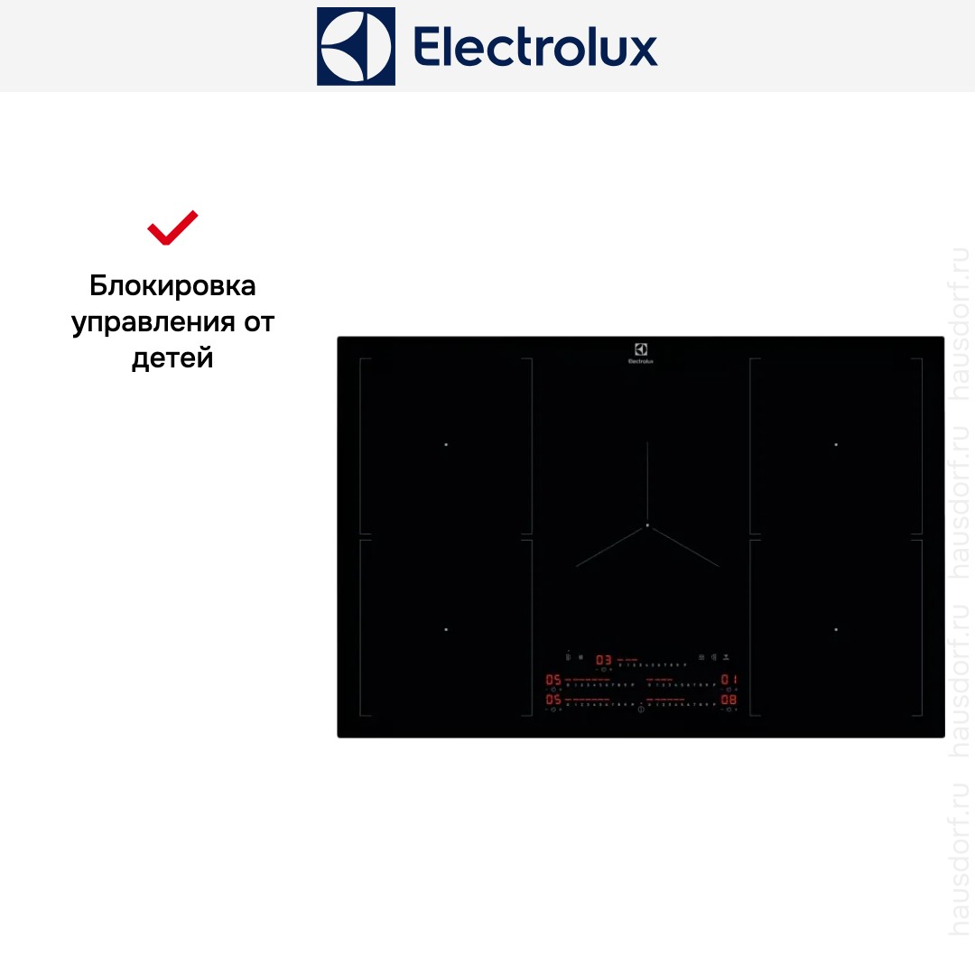 Таймер с отключением в конце приготовления в электрических варочных панелях Electrolux предназначается для безопасной, удобной и экономичной готовки. Длительность приготовления задается при помощи кнопок сенсорного меню для каждой зоны нагрева: о том, что блюдо готово, оповещает звуковой сигнал.
