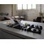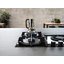 Дизайн подчёркнут матовой чернотой и крупными чугунными решётками, которые не только выглядят монументально, но и обеспечивают устойчивость посуды. Закалённое стекло стойко переносит перепады температур и легко очищается от пятен и жира. Безрамочная обработка края создаёт эффект единой поверхности и облегчает уборку, но требует точного запила для аккуратной установки заподлицо.