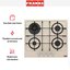 Выбор газовой варочной панели чаще всего обусловлен тем, что в частный дом или квартиру проведен именно газ в качестве обогрева. Работать с этой моделью довольно просто, так как мощность нагрева видна невооруженным взглядом — по силе огня в горелке. Количество конфорок в этой модели: 4. Горелки с двойной короной позволяют увеличивать мощность нагрева в зависимости от диаметра посуды.
