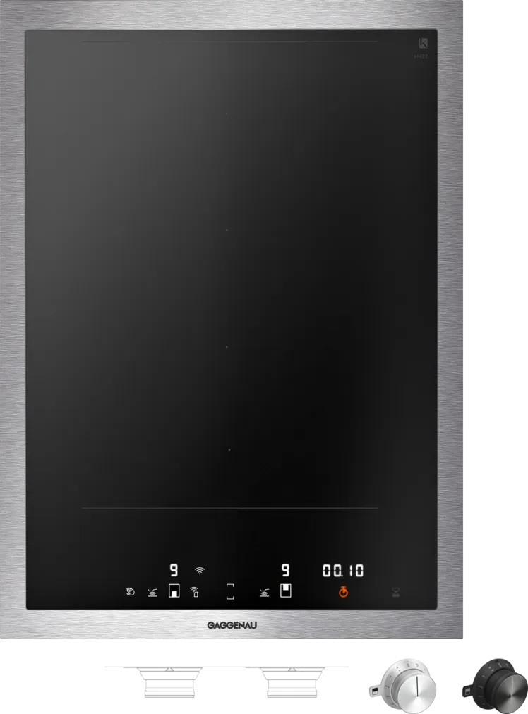 Модель Гаггенау VI422115 входит в дизайн-линейку: 400 series Vario. Цвет — черный. Благодаря рамке она отделена от рабочей зоны и прочнее закреплена на столешнице. Материал самой поверхности: стеклокерамика. Управление этой моделью электронное. Для переключения уровней нагрева, выбора функций используются следующие переключатели: сенсорные/TouchControl, поворотные переключатели с подсветкой. Продвинутая система контроля за прибором делают его современным и отвечающим на главные запросы покупателя.