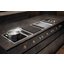 Хорошей альтернативой рамке является металлический профиль, который обычно устанавливается только спереди или сбоку. Он также не позволяет жидкости стекать на столешницу, но не «съедает» полезную площадь. Что касается варочных панелей без рамки, неизменной популярностью пользуются модели со скошенным краем. Такая обработка называется фацетной — внешняя сторона панели имеет огранку под углом 45 градусов. Такая панель очень легко чистится и эффектно выглядит, а современные методы огранки защищают края от сколов.