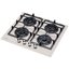 Варочная панель оснащена четырьмя конфорками с удобным расположением. Держатель для посуды состоит из двух частей, что также является преимуществом, так как его удобно мыть. Решетка изготовлена из долговечного материала — чугуна. Его чуть шероховатая поверхность обеспечивает дополнительную устойчивость посуде и не дает ей соскальзывать, при этом не царапает дно изделий. Механическое управление занимает центральное положение спереди. Удобные регуляторы легко поворачиваются. В каждую ручку интегрирован автоматический электроподжиг, который создает дополнительный комфорт при эксплуатации.