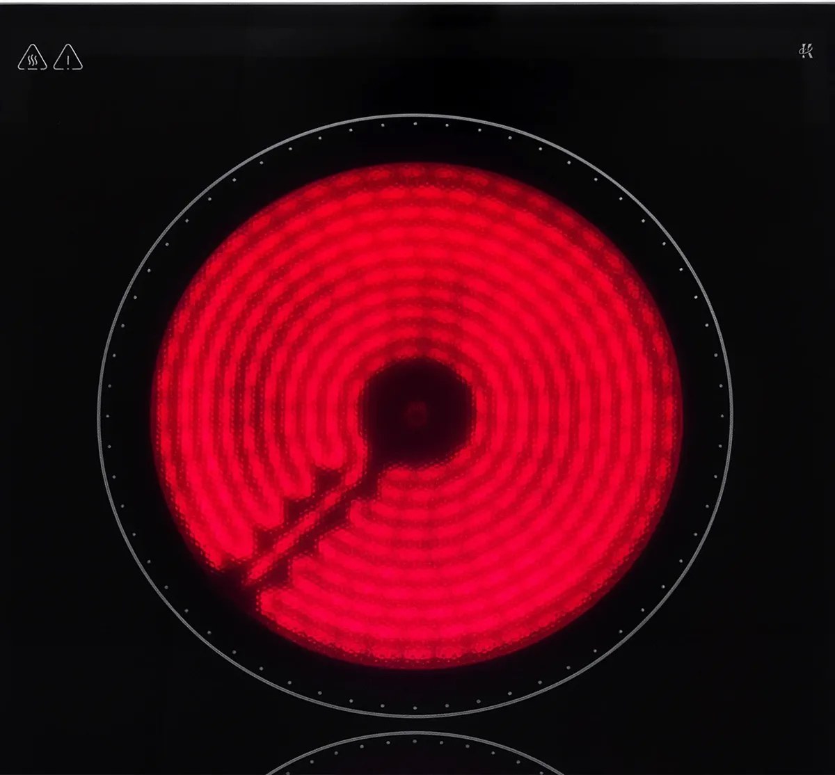 Традиционный способ нагрева сначала конфорки, затем посуды. Вольфрамовая лента разогревается до нужной температуры, передает тепло стеклокерамической поверхности, а она — кастрюле.