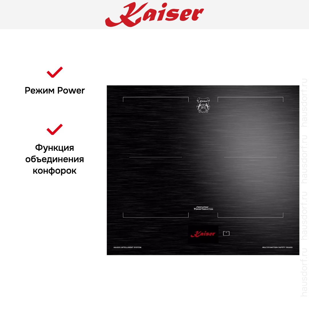 Модель Кайзер KCT 6140 FI входит в дизайн-линейку: La Perle. Цвет — черный. Благодаря отсутствию рамки она отлично впишется в интерьер и не займет лишнее место на столешнице, которое можно использовать для работы. Материал самой поверхности: стеклокерамика. Управление этой моделью электронное. Для переключения уровней нагрева, выбора функций используются следующие переключатели: сенсорные/TouchControl. Продвинутая система контроля за прибором делают его современным и отвечающим на главные запросы покупателя.