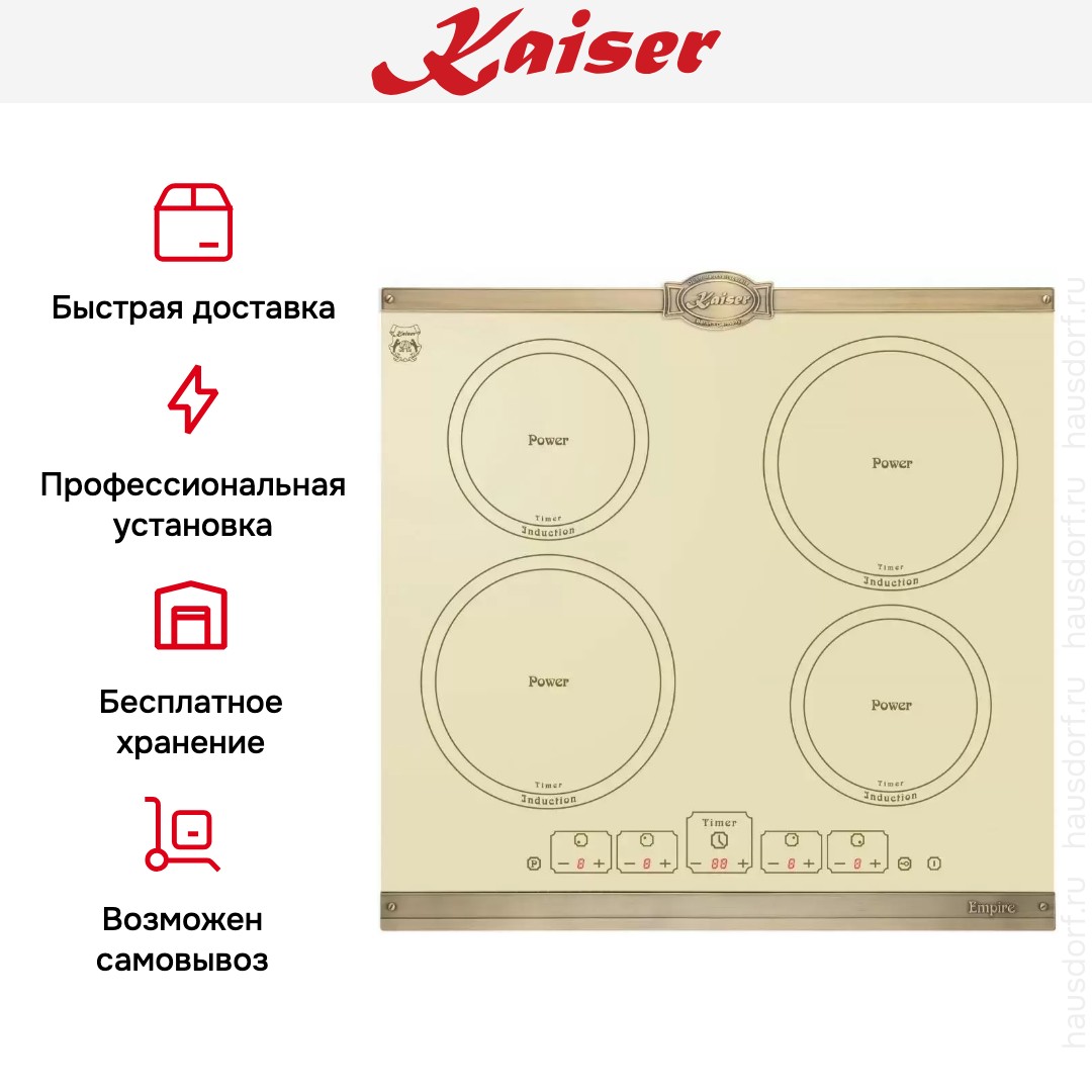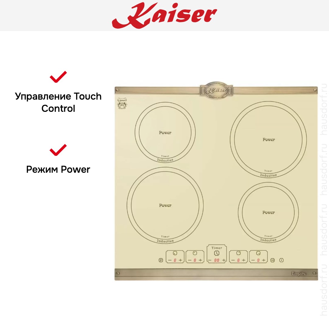 Модель Кайзер KCT 6195 IElfEm входит в дизайн-линейку: Empire. Цвет — слоновая кость. Благодаря рамке она отделена от рабочей зоны и прочнее закреплена на столешнице. Материал самой поверхности: стеклокерамика. Управление этой моделью электронное. Для переключения уровней нагрева, выбора функций используются следующие переключатели: сенсорные/TouchControl. Продвинутая система контроля за прибором делают его современным и отвечающим на главные запросы покупателя.