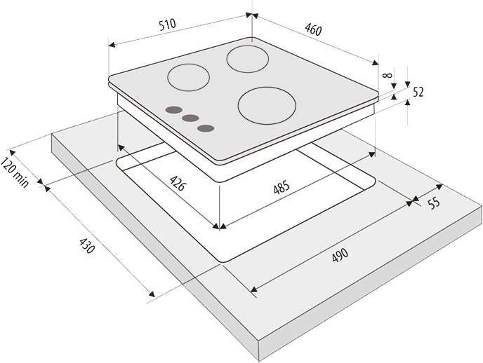 Глубина варочной панели представляет собой расстояние от ближайшей к пользователю ее точки до самой дальней. В первую очередь глубина определяется соответствующими размерами столешницы, куда варочная панель будет встроена, и уже во вторую — количеством и расположением конфорок.
