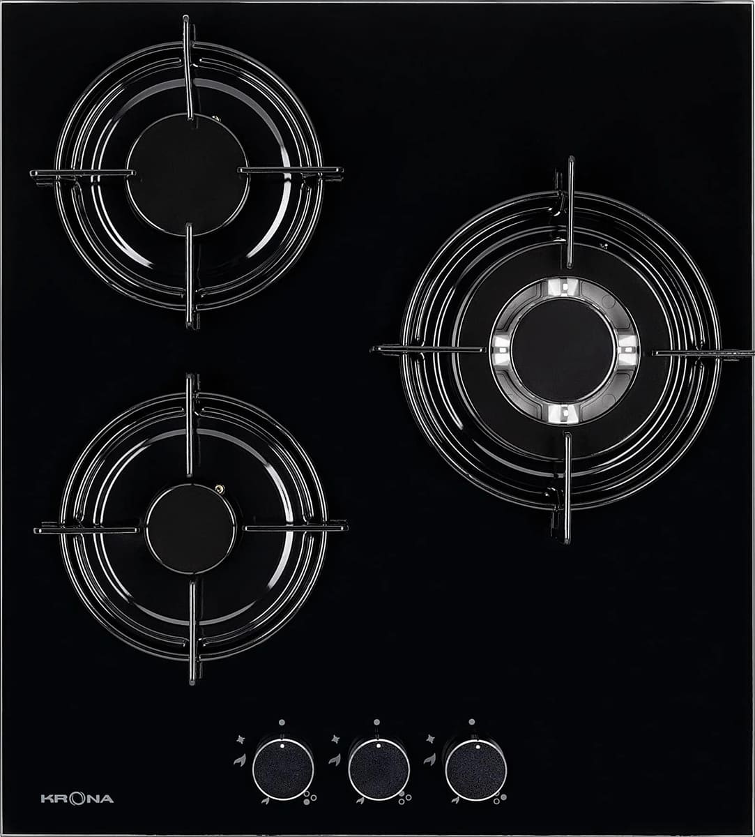 Выбор газовой варочной панели чаще всего обусловлен тем, что в частный дом или квартиру проведен именно газ в качестве обогрева. Работать с этой моделью довольно просто, так как мощность нагрева видна невооруженным взглядом — по силе огня в горелке. Количество конфорок в этой модели: 3.